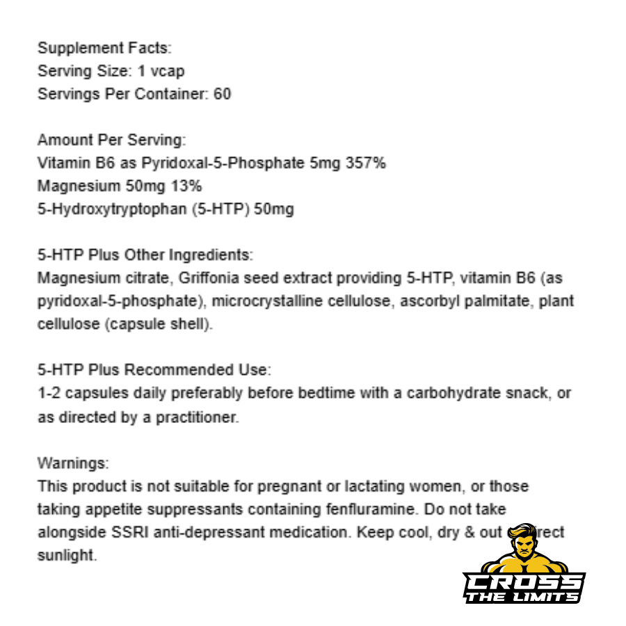 | 5-HTP (5-hydroxytryptophan) | 50 mg | Supports serotonin production |