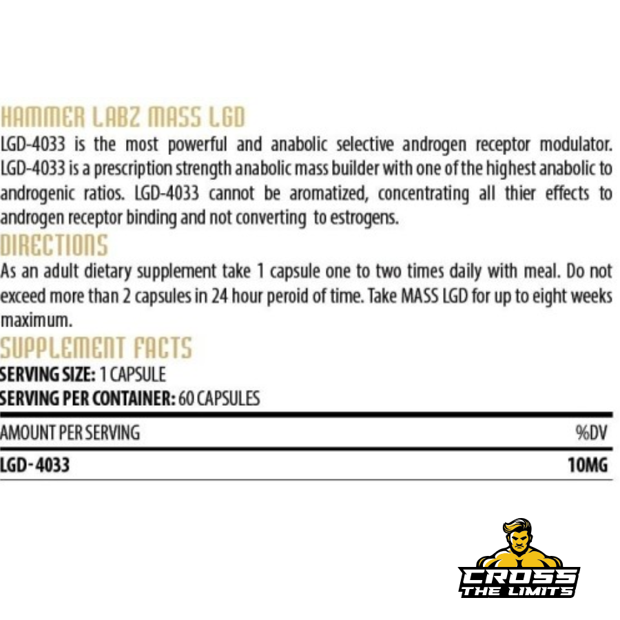 Hammer Labz Mass LGD-4033 is an advanced formula designed for athletes and experienced users looking to support lean muscle development, strength output, and overall performance. Built around LGD-4033 at 10mg per capsule, this product is positioned as a high-impact addition to performance-focused supplement stacks.
