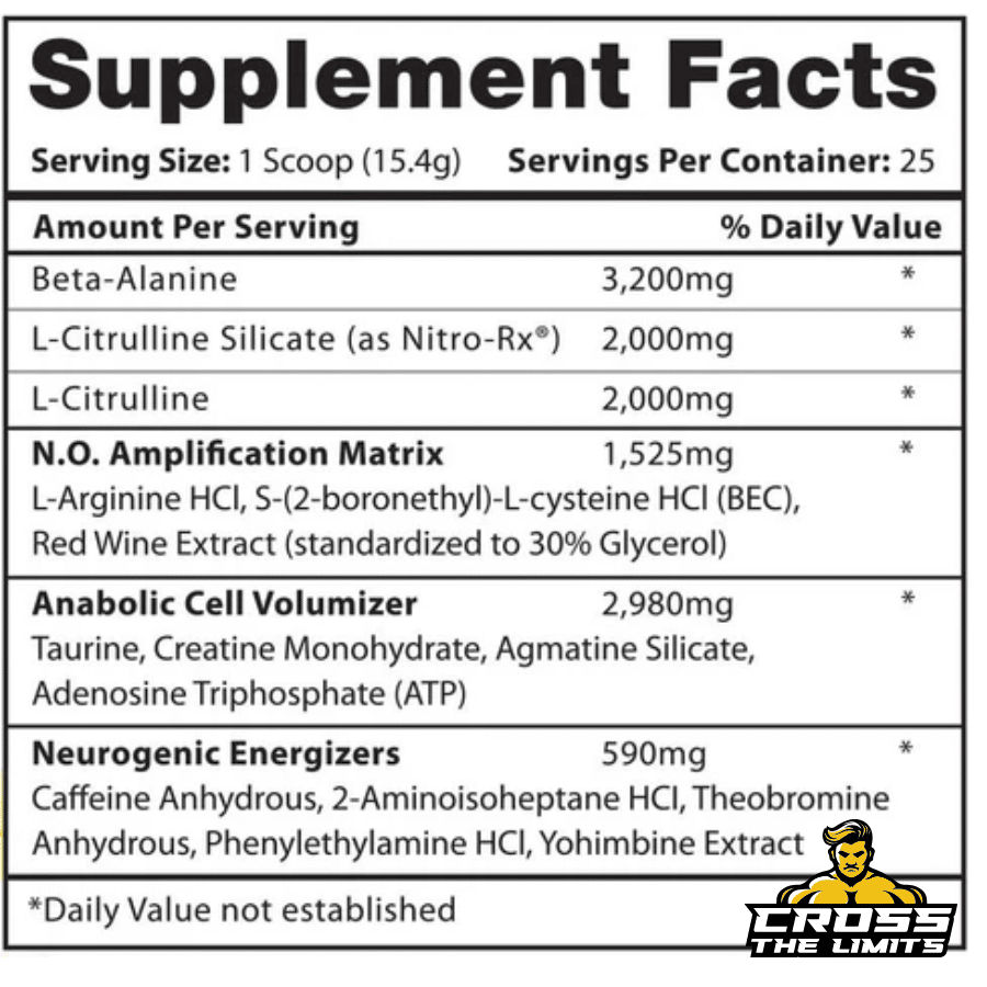 (Caffeine Anhydrous, 2-Aminoisoheptane HCl, Theobromine, Phenylethylamine HCl, Yohimbine Extract)