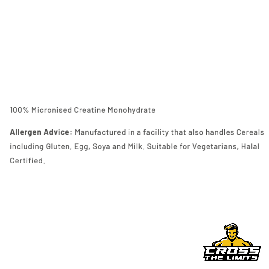 This is a classic, no-frills creatine product, done appropriately. One ingredient, clearly stated, micronised for ease of use, and nothing added that doesn’t need to be there. For users who want a simple creatine option without flavouring or blends, this fits perfectly into the Cross The Limits philosophy of clean labelling and straightforward supplementation.
