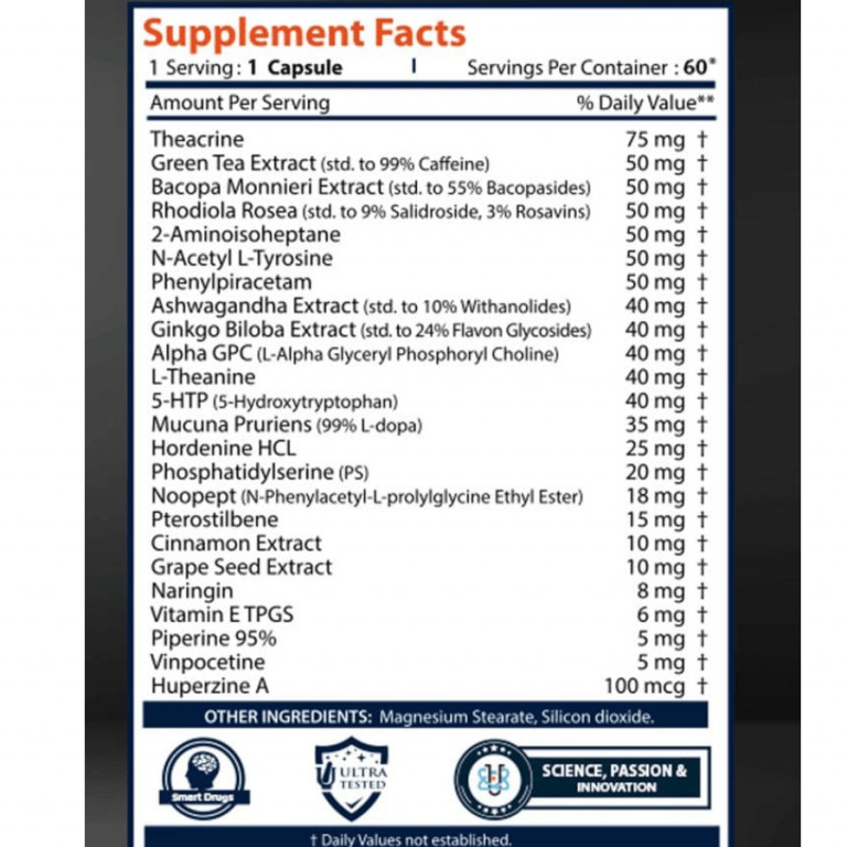 With ingredients like Phenylpiracetam, Noopept, DMHA (2-amino), Alpha GPC and Theacrine, it delivers a noticeable boost in focus, drive, and mental performance — without pushing into extreme pre-workout territory.